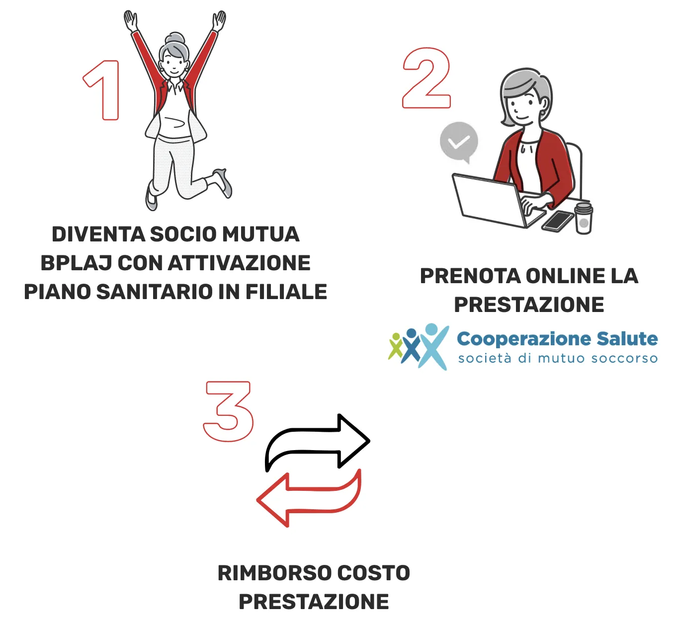 Con Mutua BPLaj non resti solo/a: ti aiutiamo ad accorciare le attese, a scegliere medico e struttura, ottenere tariffe agevolate nelle strutture convenzionate e rimborsi chiari e tracciabili. Grazie alla rete convenzionata e alla piattaforma di Cooperazione Salute , sms tra i principali enti mutualistici nazionali, le urgenze sono più semplici da gestire e l’assistenza più efficace.